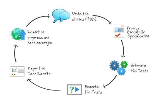 “BDD (Behaviour Driven Development) is a methodology for developing software through continuous example-based communication between developers, QAs and BAs.“
